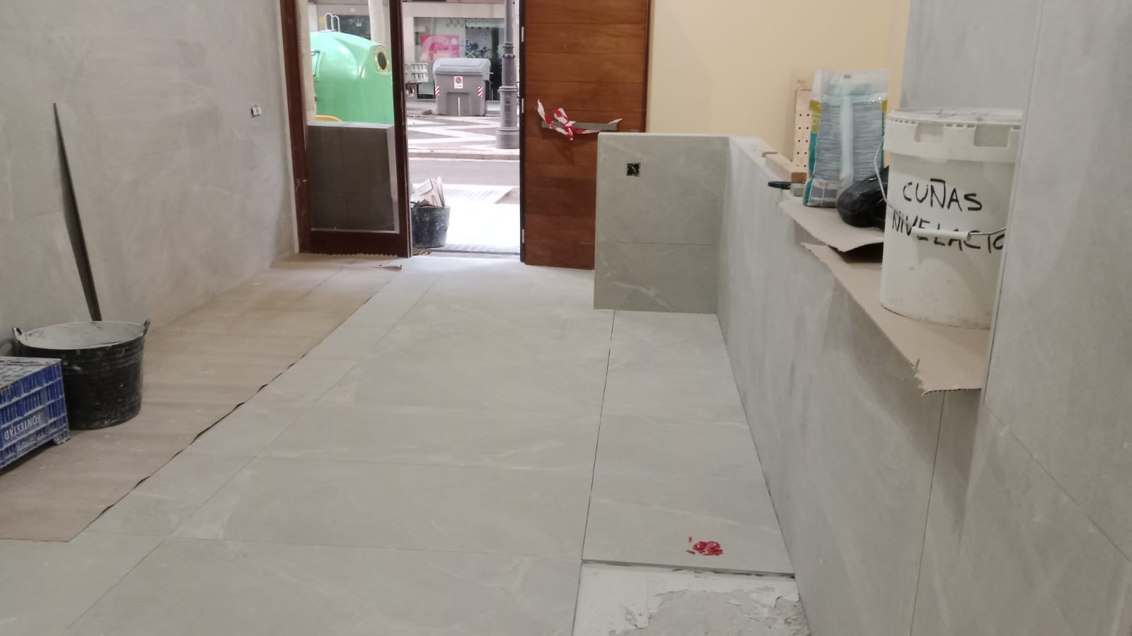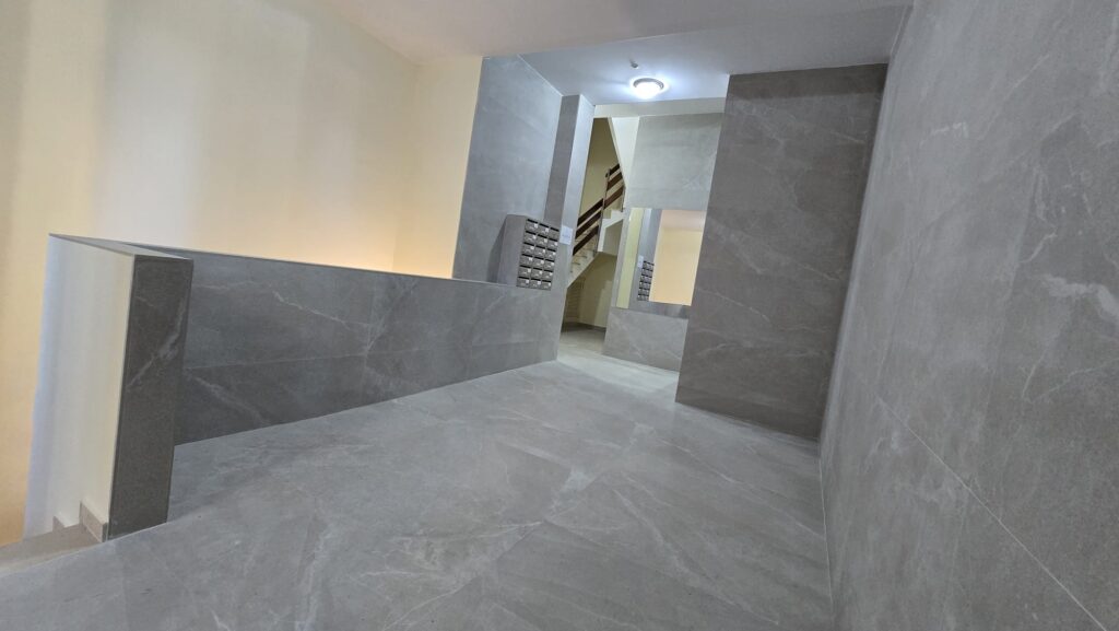 - Revestimiento del portal en porcelánico