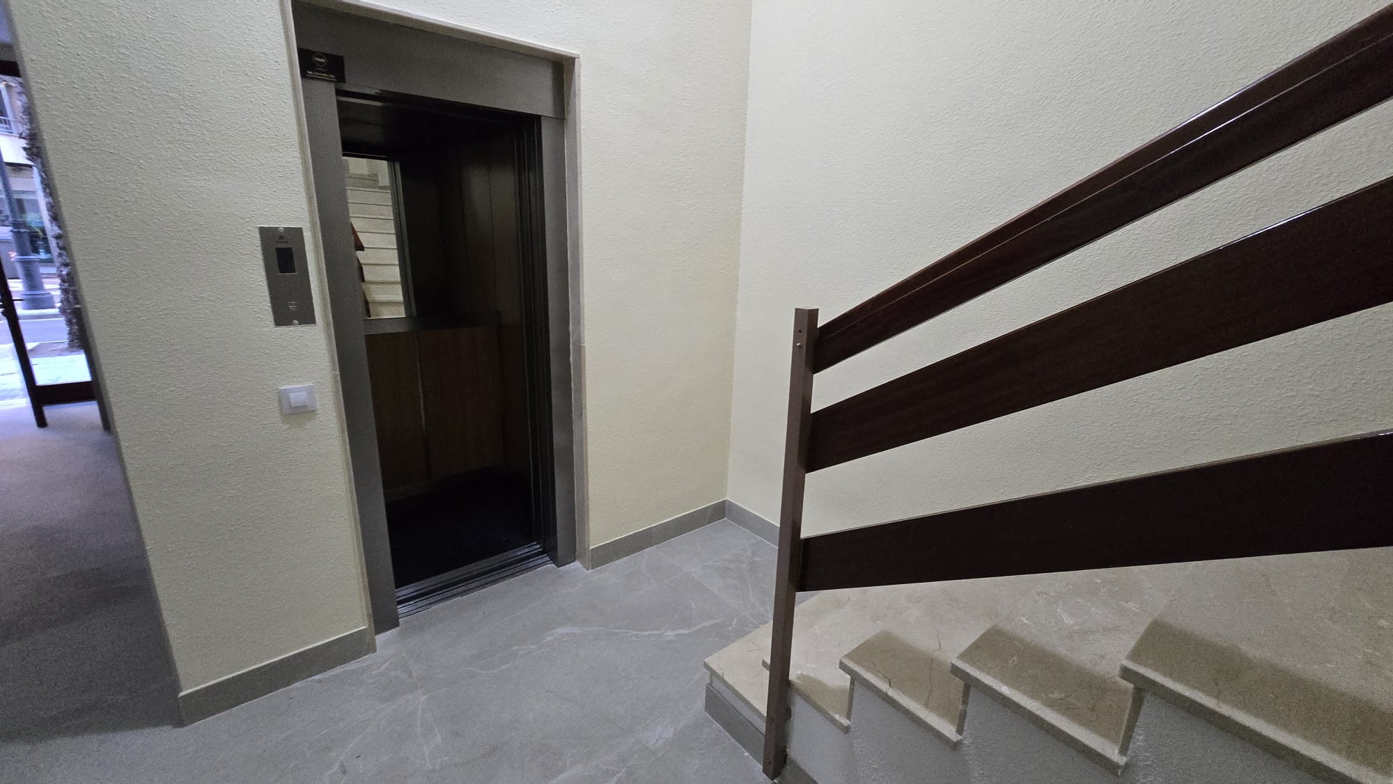 El ascensor queda ahora al mismo nivel que la entrada, eliminando cualquier escalón.